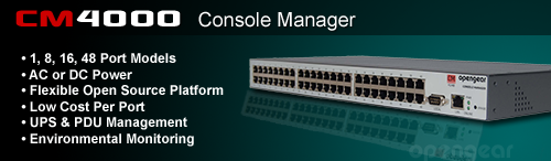 The Opengear CM4000 is the most efficient console server at the lowest cost available today. In one secure package, we have developed an out of band management solution for serial console ports, servers, virtual servers, service processors, UPS & PDU's, envioronmental monitoring and more. The CM4000 family of advanced console servers enables system administrators to securely access and control their data centers and networks from anywhere in the world.